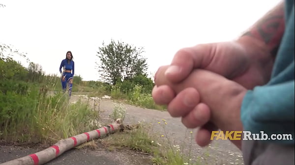 Seductively brunette angel with big tits Jasmine Jae spreading her legs and pissing in public